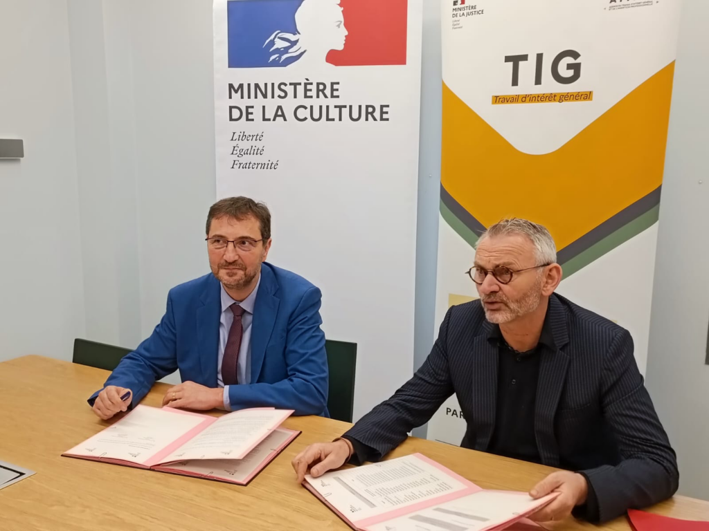 Le 17 novembre 2023, l'Atigip (ministère de la Justice) et la délégation générale à la transmission, aux territoires et à la démocratie culturelle (ministère de la Culture) ont signé une convention de partenariat, en présence d'Albin Heuman, directeur de l'Atigip et de Noël Corbin, délégué général à la transmission, aux territoires et à la démocratie culturelle.
