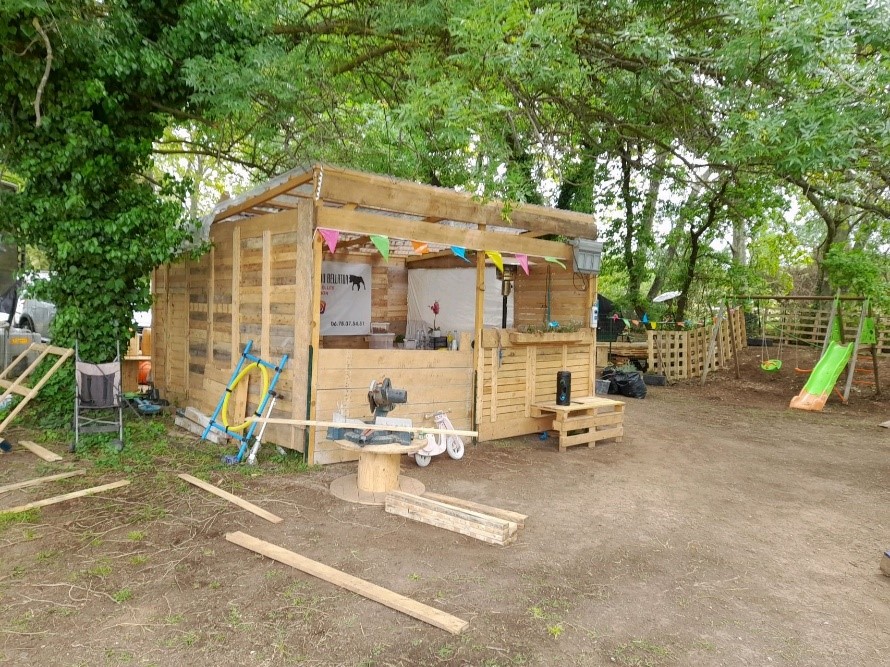 • Aide à l’entretien et au développement de la structure, au travers de la construction d’équipement écoresponsable (toilettes sèches, mur végétal, réfection des barrières avec des matériaux de récupération)